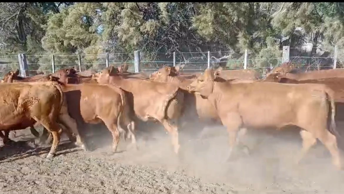 En Pehuen-co, Buenos Aires. 60 vaquillonas angus coloradas marca liquida de 13/15 meses de edad. Pesan 270/280kg promedio. Encierre día anterior y 3% de desbaste. Tabla de $1 desde 280kg. Plazo 30 días desde remate Observaciones: Algunas con algo de genetica Limangus.