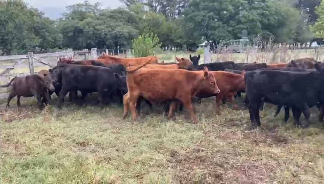 En Navarro 55 machos y hembras (60 % macho 40 % hembra) macho entero destetado. 190/200 Kgs van a remate de mañana con 30 y 45 días. Desbaste 3%. ( en el video hay algunas terneras pesadas y algunos livianitos que no son de la tropa)
